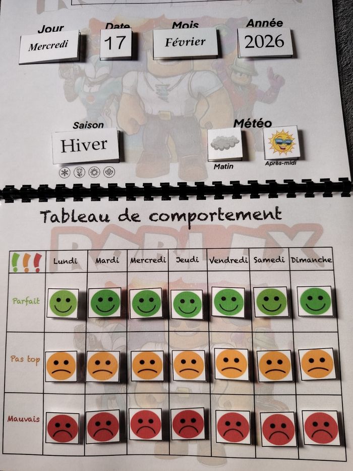 Trio Roblox 3 fiches calendrier plus comportement plus ma routine  - photo numéro 6
