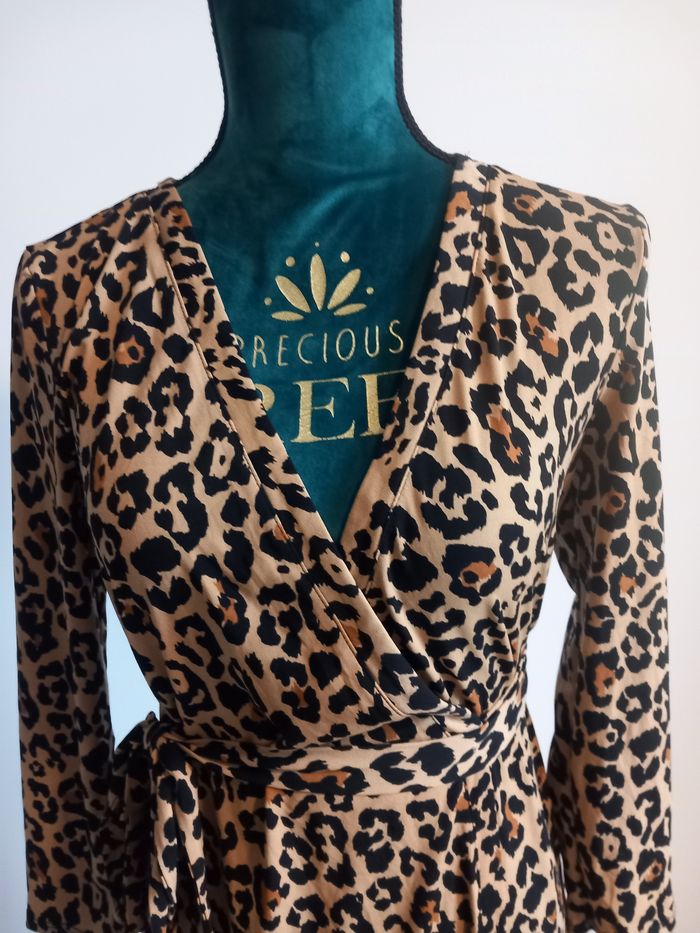 🐆 robe portefeuille aux motifs léopard de la marque Mango en taille S (peut aussi convenir a une taille M grace a la coupe portefeuille). 🐆 tissu fluide, très agréable à porter, il s'adapte à vos formes. 🐆 Ceinture assortie à la robe. 🐆 Robe élégante et originale en parfait état.