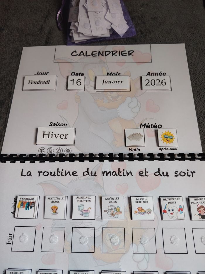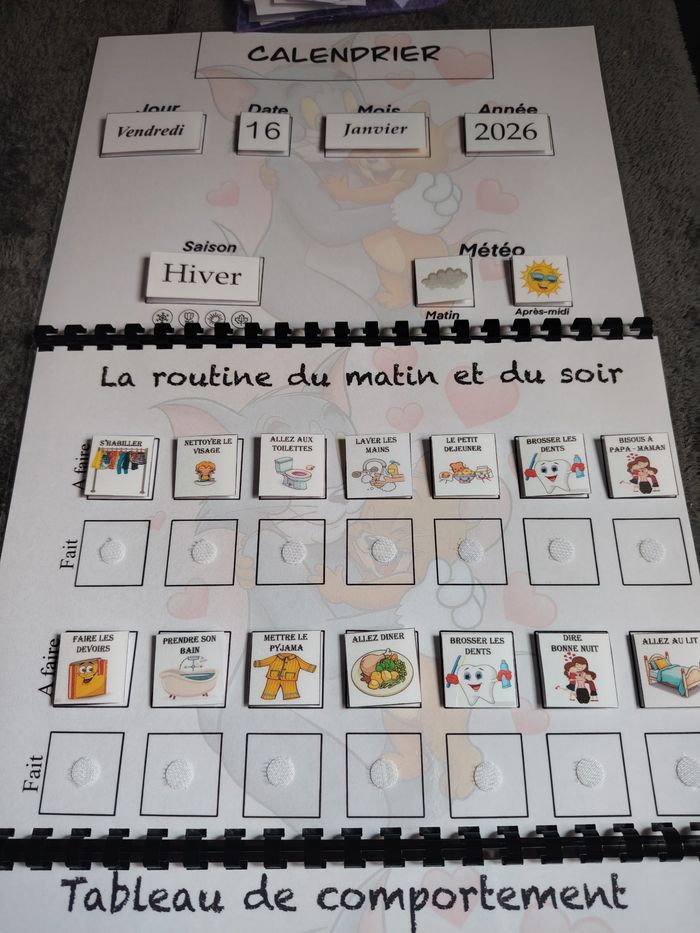 Trio Tom et Jerry 3 fiches ma routine plus calendrier plus comportement