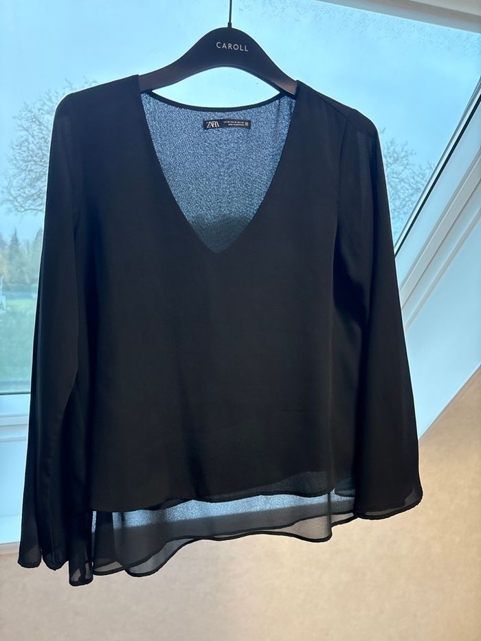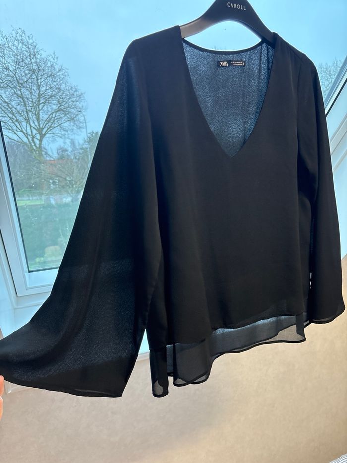 Jolie blouse fluide Zara. L’étiquette de composition a été coupée mais elle doit être en polyester. Col V , manches longues. Aucun défaut