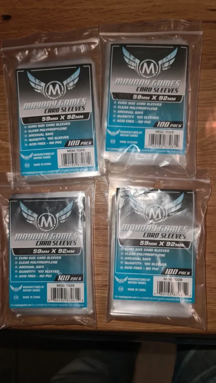 Neufs lot de 4 paquets de 100 de protèges cartes/Sleeves Mayday Games 59 x 92 mm - photo numéro 1