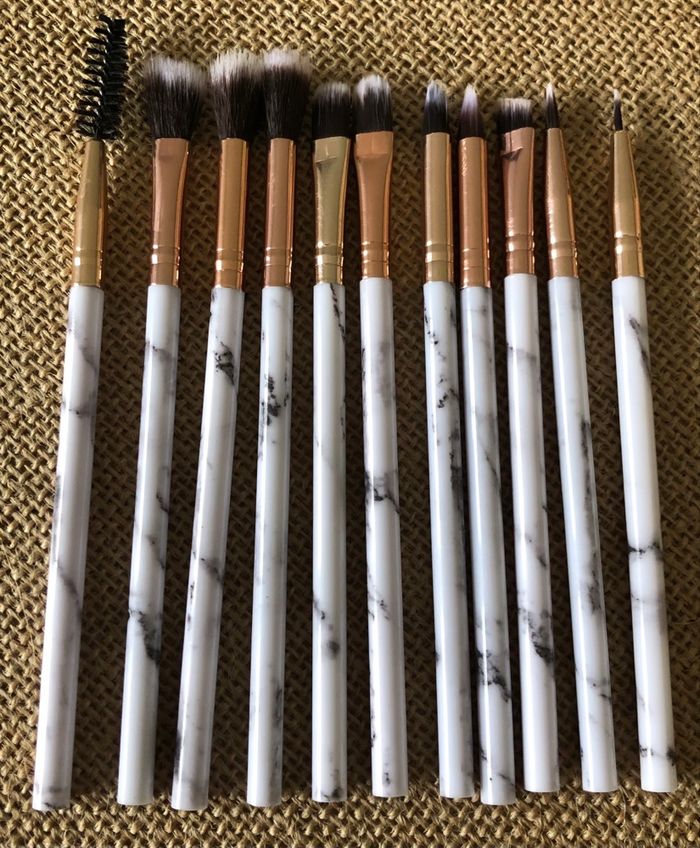 Ensemble de Pinceaux Maquillage Manche design à motifs marbrés Poils en fibres synthétiques doux et denses Se maquiller tout en étant doux et non irritant 11 pièces pour yeux 👀😍🤩 Longueur 12cm marque : Newellsail