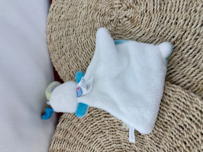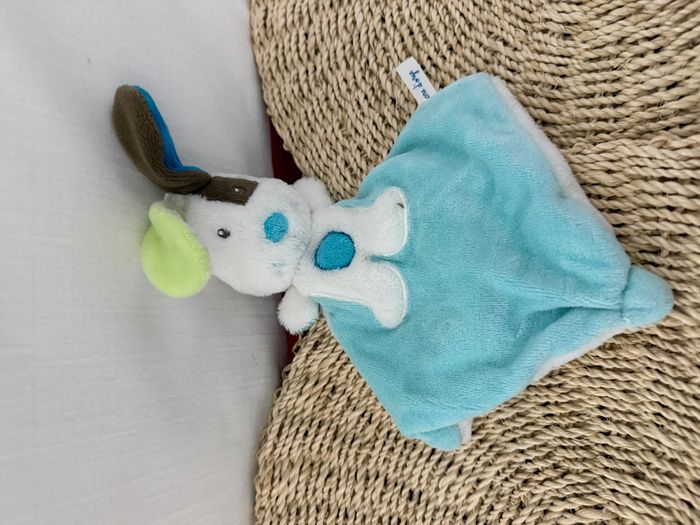 Doudou plat chien blanc bleu rond bleu coquard marron sucre d'orge - photo numéro 3