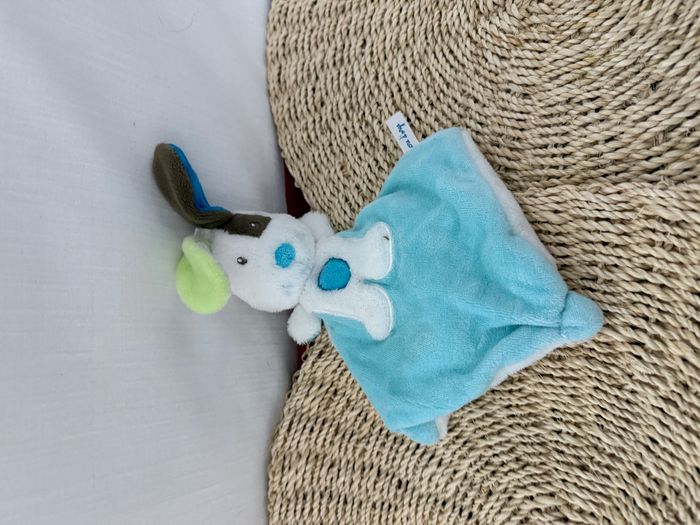 Doudou plat chien blanc bleu rond bleu coquard marron sucre d'orge - photo numéro 1