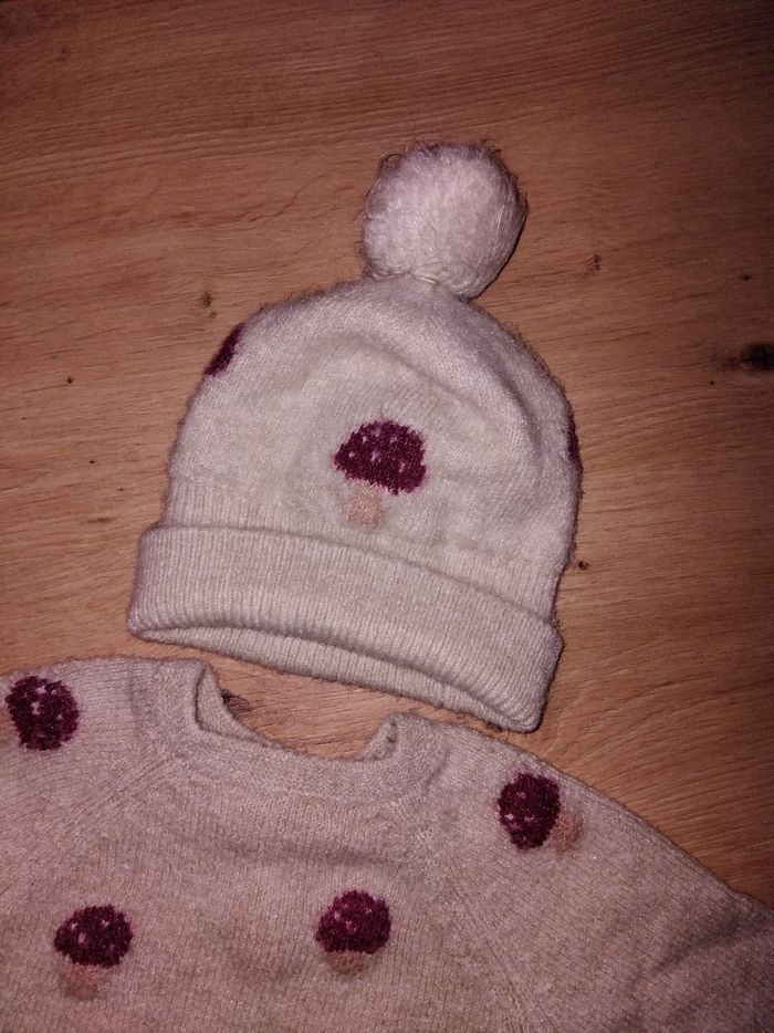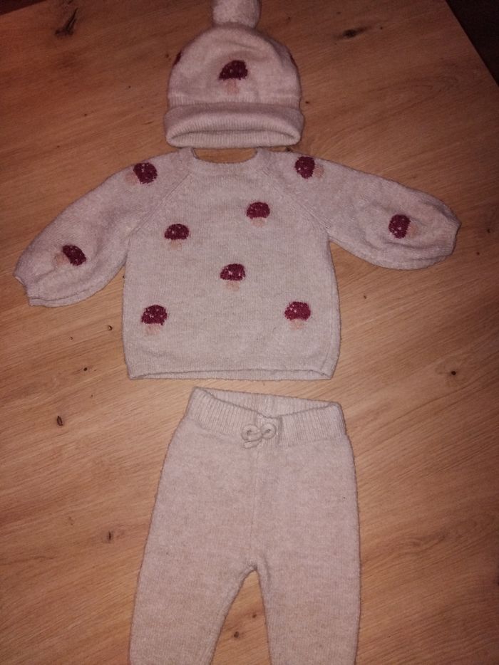 Ensemble en laine champignons beige Kiabi taille 3 mois Très bonne état 1 bonnet 1 pantalon 1 pull