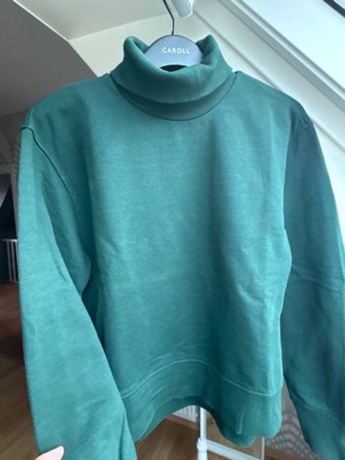 Sweat col roulé Zara vert foncé ( difficile de restituer la couleur exacte) Neuf , porté 1 ou 2 fois maxi. Aucun défaut. Coton et polyester. Remise en main propre sur Lomme/Lambersart