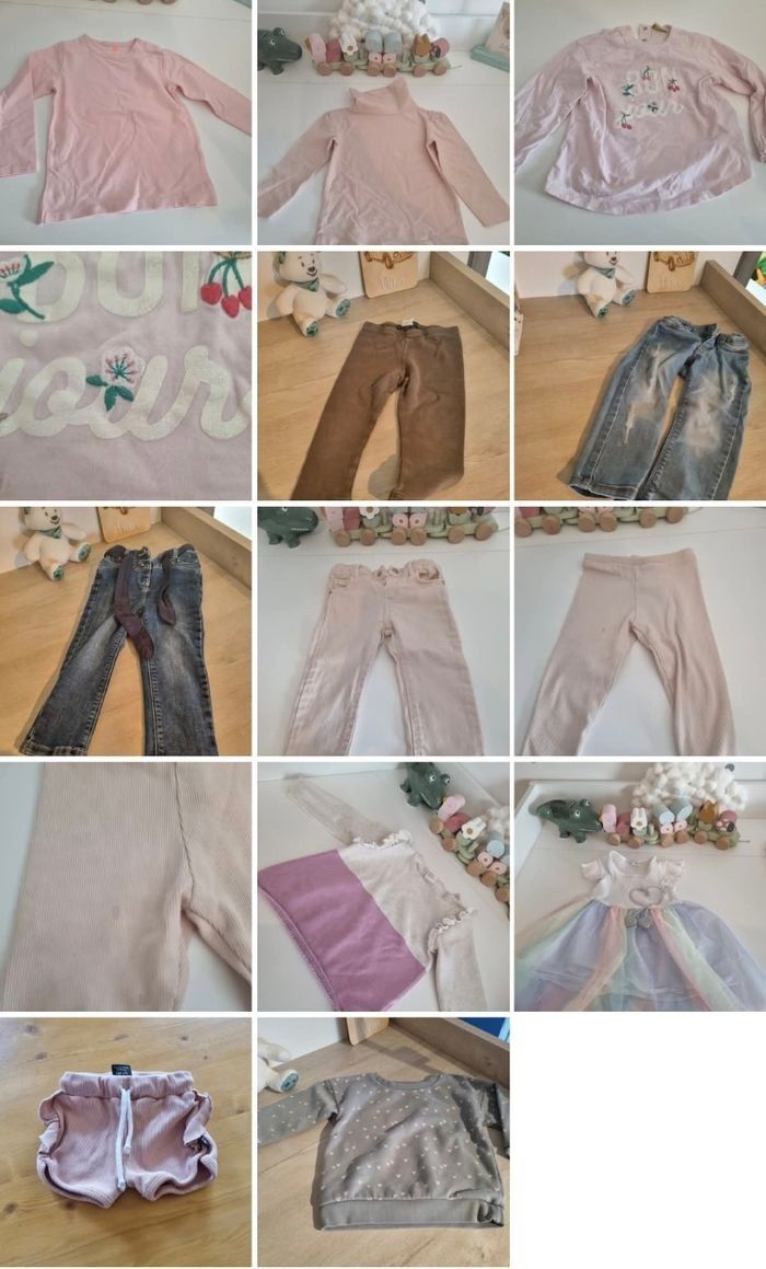 Fille 24 mois 86 cm 28 pièces : 25€ ou à la pièce [ ] 4 robes [ ] 1 pantalon [ ] 3 jeans [ ] 2 shorts [ ] 1 jupe legging [ ] 2 leggings ( + 1 legging taché offert ) [ ] 6 pulls [ ] 1 gilet [ ] 6 blouses ( + 1 tachés offerte) [ ] 1 ensemble 28 pièces 25€