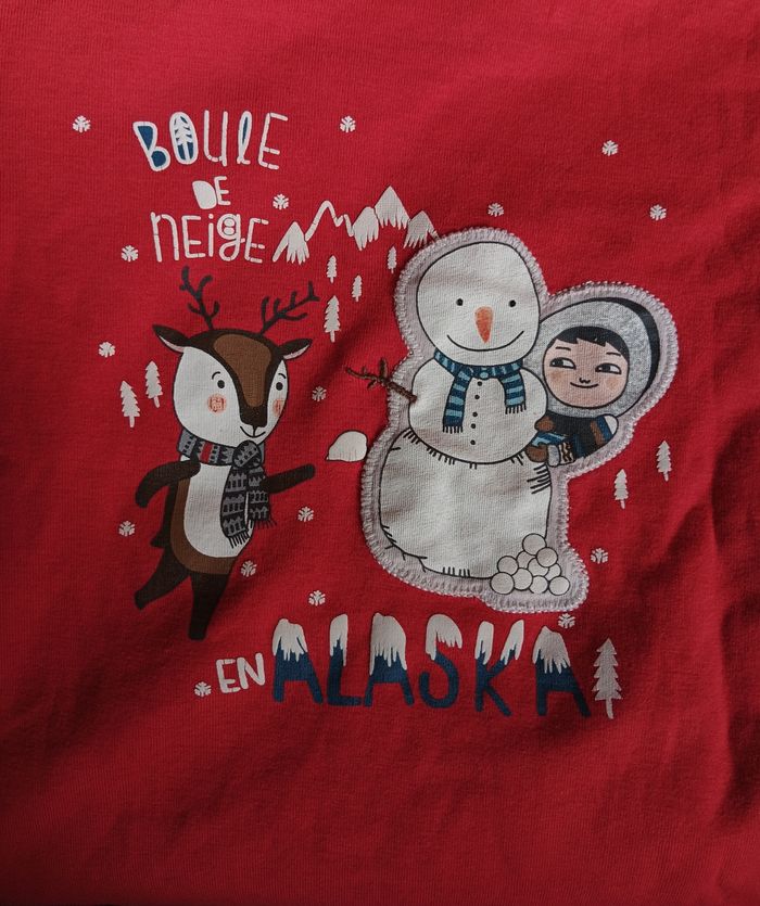 Joli sous-pull à col roulé de la marque Sergent Major, coloris rouge vif. Le motif central représente une scène hivernale "Boule de neige en Alaska" avec un petit renne, un bonhomme de neige et un personnage en tenue polaire. Très mignon et confortable pour l'hiver ! Marque : Sergent Major Taille : 6 ans (116 cm) Matière : 100% Coton (doux et respirant) État : bon état général Détails : Illustration avec empiècements texturés (style patch) 📏 Mesures à plat : Largeur (aisselle à aisselle) : 32 cm Longueur (épaule jusqu'en bas) : 40 cm #skms62141_fille6ans #sergentmajor #souspull #colroule #enfant6ans #modeenfant #alaska #hiver #rouge #vetementenfant #6ans
