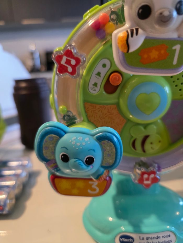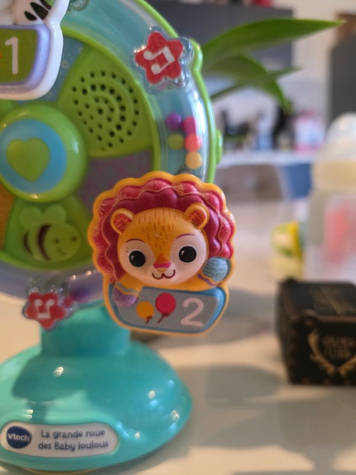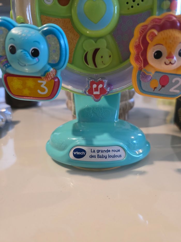 Grande roue de Baby Loulou de chez Vtech. Parle et fait des musique au bruit des animaux présent sur la roue. Maison non fumeur et sans animaux. Vendu sans les piles