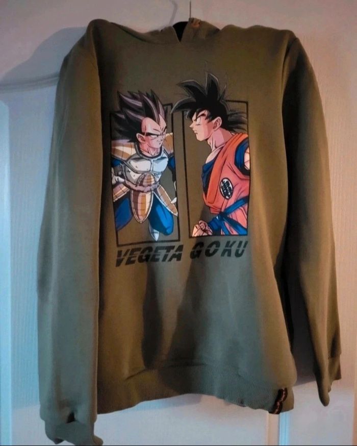 Sweat à capuche kaki Vegeta vs goku Taille M Très bon état peu porté #monocean_tailleM