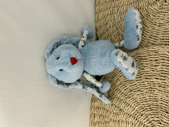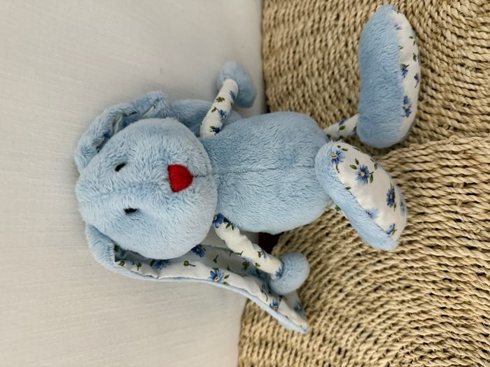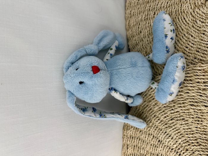 Doudou lapin bleu fleurs AUBERT - photo numéro 1