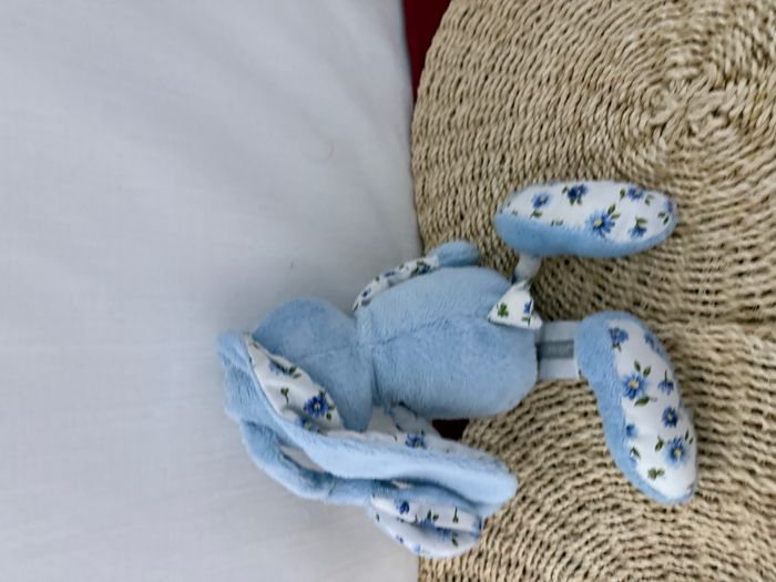 Doudou lapin bleu fleurs AUBERT - photo numéro 5