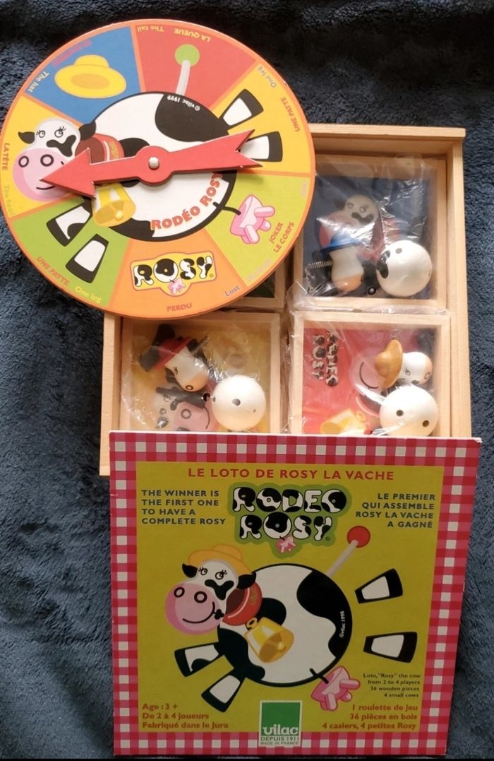 Je vends ce jeu de loto / construction sur la thématique de Rosy la vache. Édité en 1998 par la marque française Vilac (réputé pour ses jeux en bois). Très bon état.