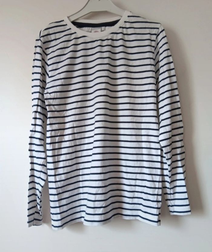 T-shirt manches longues rayé blanc et bleu marine – C&A – 134/140 - photo numéro 1