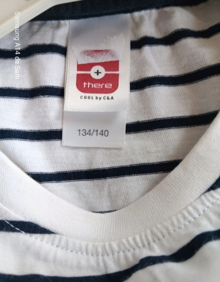 Vends ce joli t-shirt à manches longues (style marinière) pour enfant, de la marque Here+There (C&A). Il est blanc avec des rayures horizontales bleu marine, un classique indémodable et facile à assortir État : bon état général. Matière : 100% Coton (doux et respirant). Taille : 134/140 (environ 9-10 ans). Coupe : Manches longues, col rond. Mesures à plat : Largeur (aisselle à aisselle) : 33 cm Longueur (épaule jusqu'en bas) : 51 cm Idéal pour l'école ou les sorties décontractées en toute saison. #skms62141_fille9ans #marinière #tshirtmancheslongues #candf #hereandthere #enfant #taille134 #taille140 #modeenfant #coton #rayures