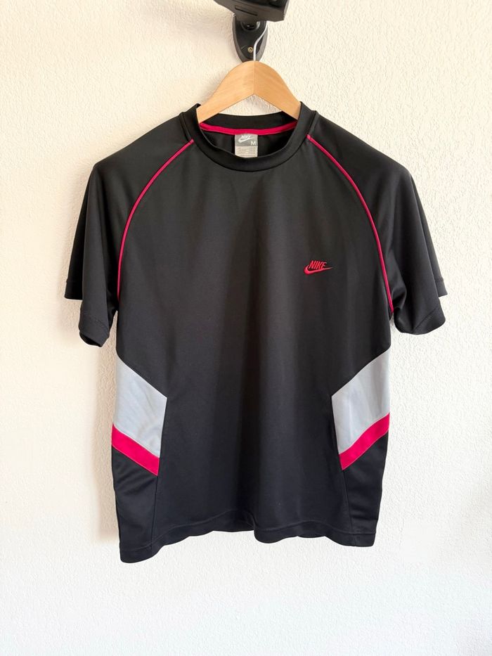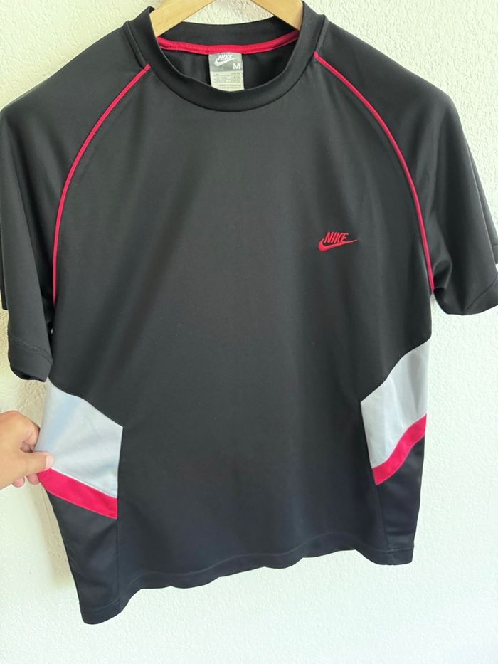 T-shirt homme Nike vintage Taille M (voir mesures ci-dessous) noir rouge gris 100% polyester Très bon état général Mesures : - épaule à épaule : 44 cm - hauteur : 61 cm