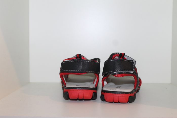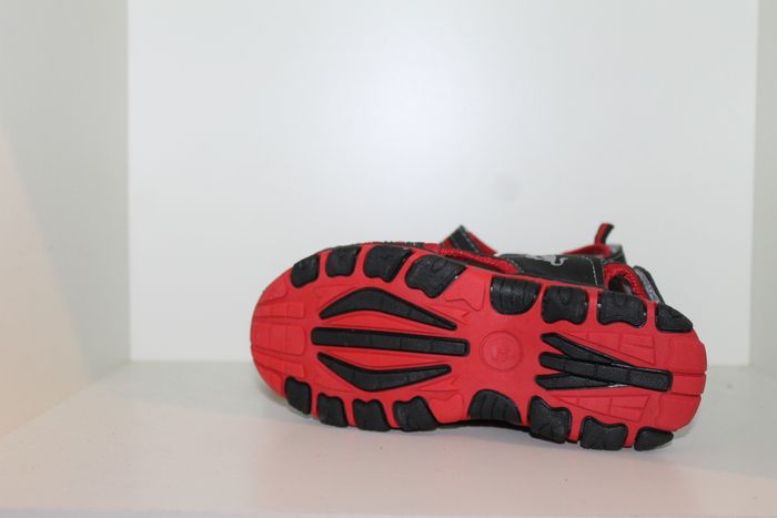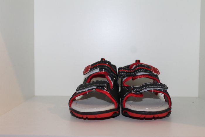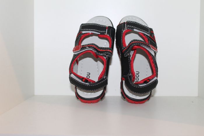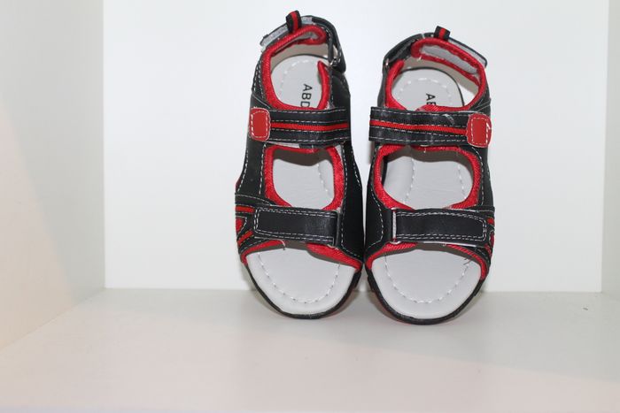 sandales nus pieds rouge et noire pointure 30 neuves dans boites,model avec 3 velcros pour un serrage au plus juste.dimensions semelle intérieur 18,5 cm en mesurant au milieu de la semelle devant et derrière. marque abdou réf 0642 n'hésitez pas à faire un lot.