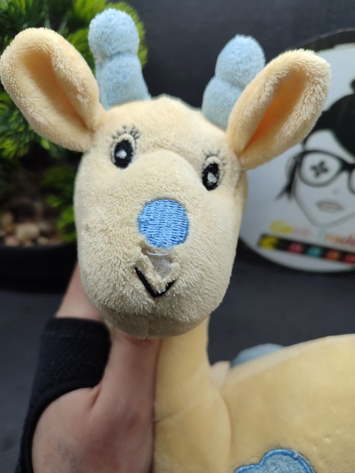 pe292 doudou girafe jaune beige bleu arthur et lola bébisol coeur peluche grelot - photo numéro 3