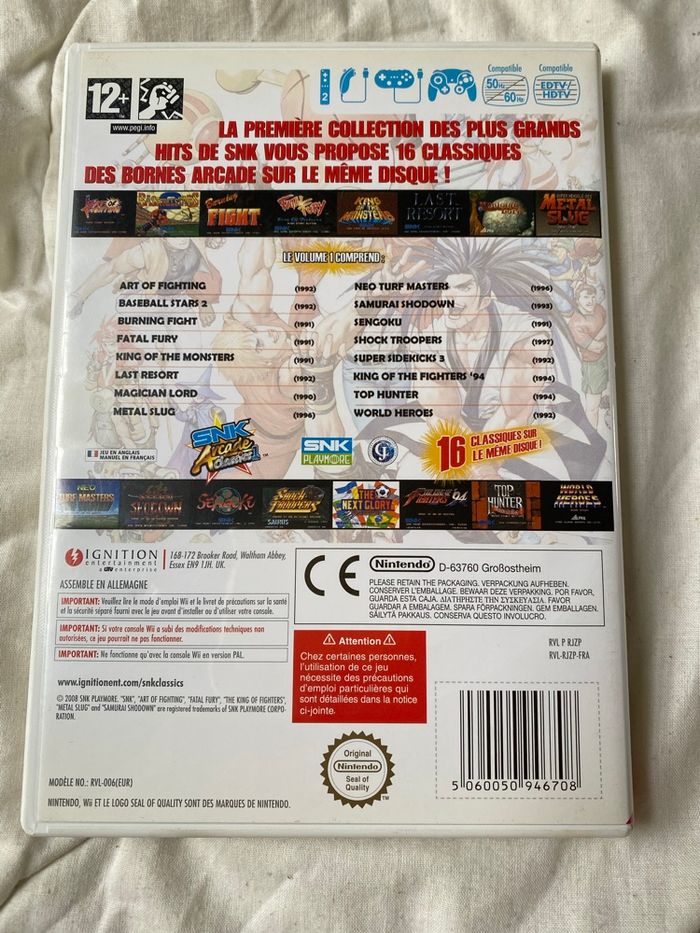 Vend jeu pour console Nintendo wii snk arcade Classic complet en parfait etat de fonctionnement