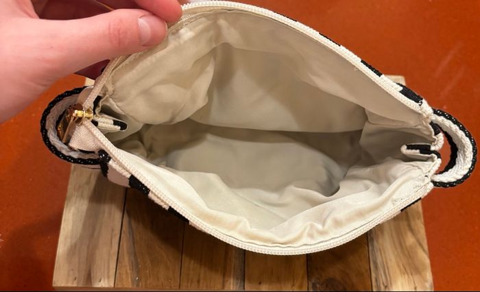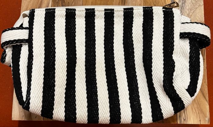 Trousse rayée noir et crème 100 % coton Lavée, jamais utilisée Neuve Taille moyenne idéale Envoi rapide