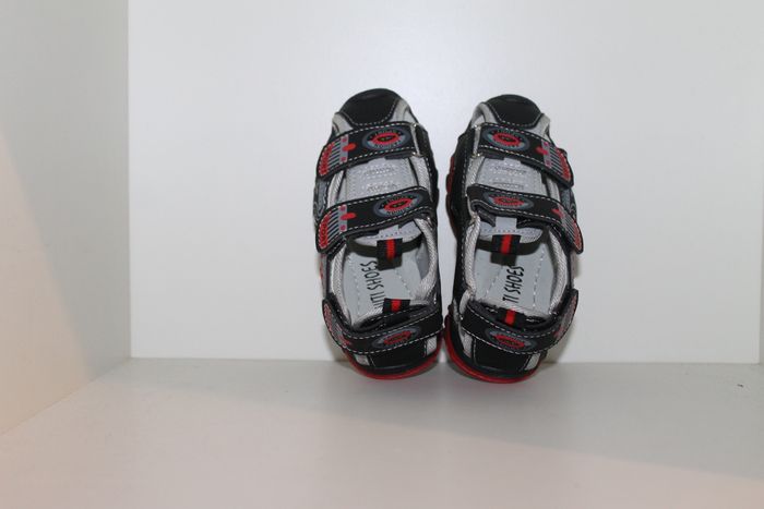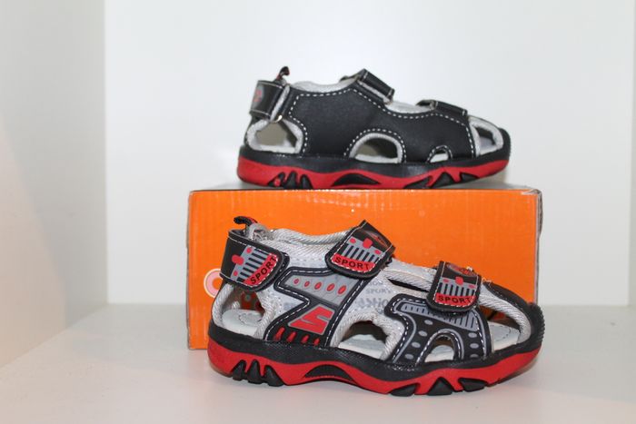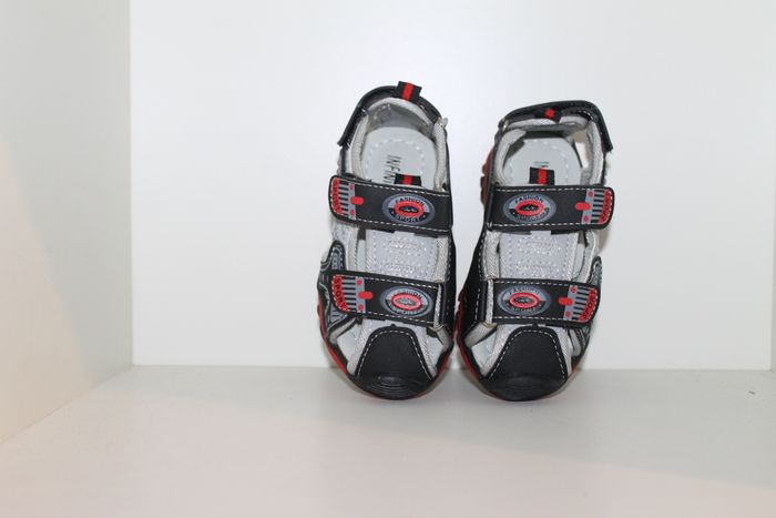 belle sandales nus pieds rouge et noire pointure 25 neuves dans boites,model avec 3 velcros pour un serrage au plus juste et fermer au bout pour éviter que les doigts de pieds de dépassent.dimensions semelle intérieur 14,5 cm en mesurant au milieu de la semelle devant et derrière. marque infiniti shoes réf 0639 n'hésitez pas à faire un lot.