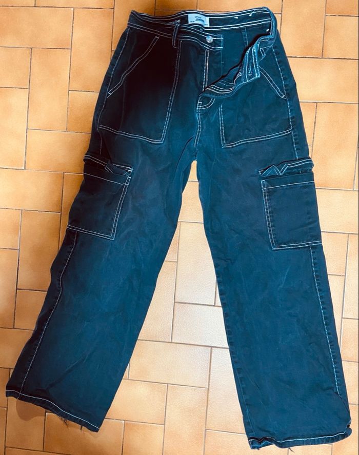 Jean cargo large forme straight gris noir blanc 40 Jennyfer