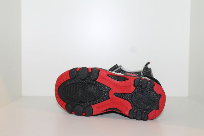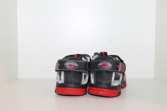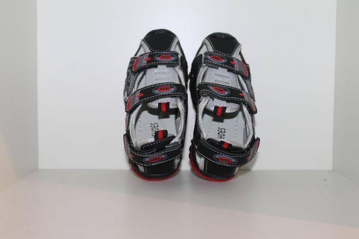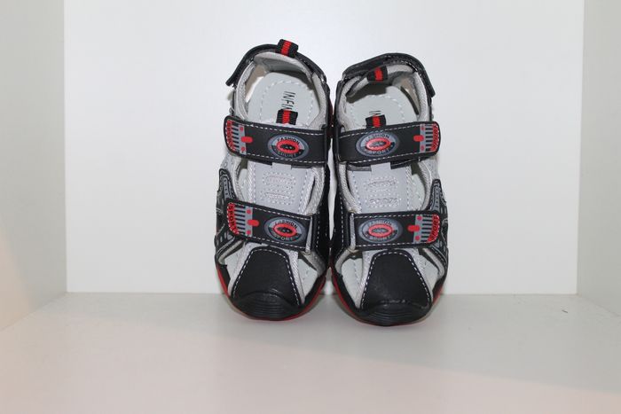 belle sandales nus pieds rouge et noire pointure 28 neuves dans boites,model avec 3 velcros pour un serrage au plus juste et fermer au bout pour éviter que les doigts de pieds de dépassent.dimensions semelle intérieur 16,5 cm en mesurant au milieu de la semelle devant et derrière. marque infiniti shoes réf 0639 n'hésitez pas à faire un lot.