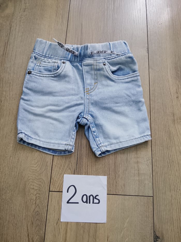 Short en jeans skinny pour bébé garçon on en taille 2 ans. Très bon état, présente une toute petite tâche mais qui est très discrète. Sans trou. Maison non fumeur mais avec animaux.