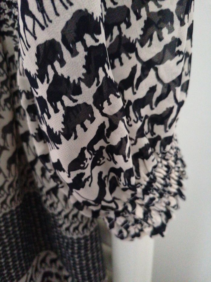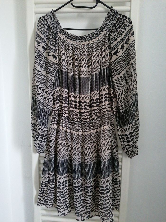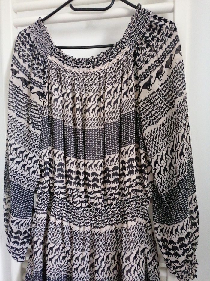 Robe légère, le bas doublé, col poignet ceinture smoke. Très jolie