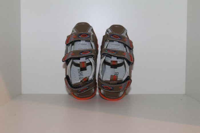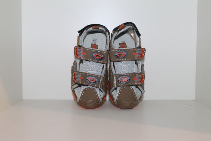 petites sandales nus pieds marron et orange pointure 26 neuves dans boites,model avec 3 velcros pour un serrage au plus juste et fermer au bout pour éviter que les doigts de pieds de dépassent.dimensions semelle intérieur 15,5 cm en mesurant au milieu de la semelle devant et derrière. marque infiniti shoes réf 1748 n'hésitez pas à faire un lot.