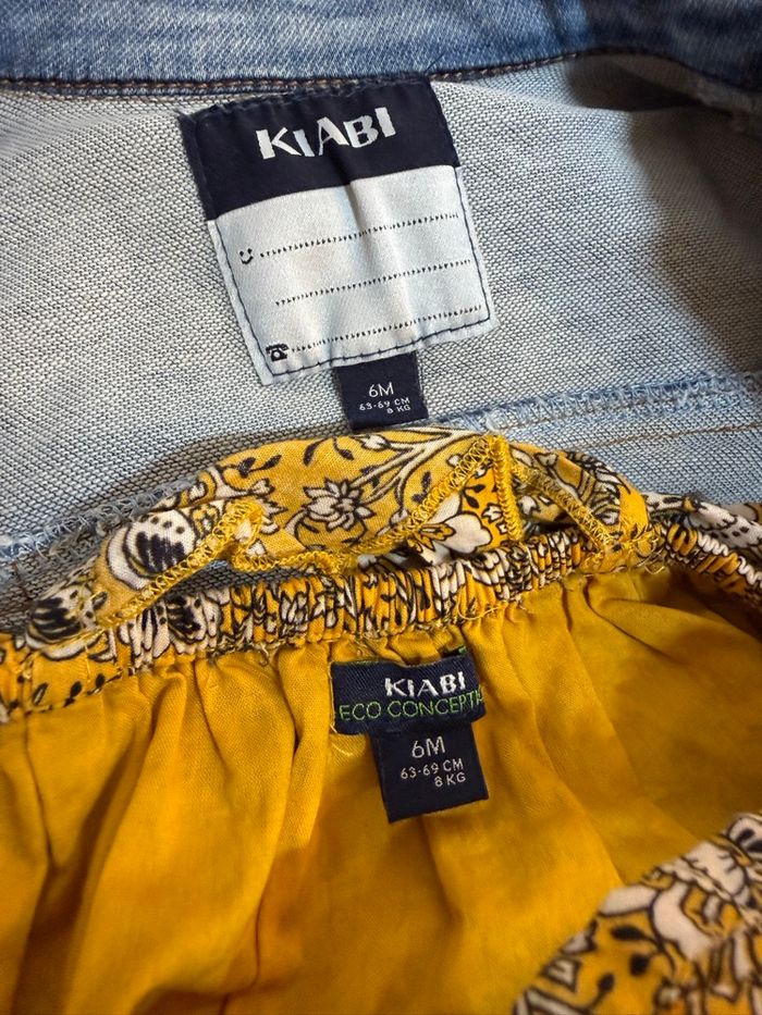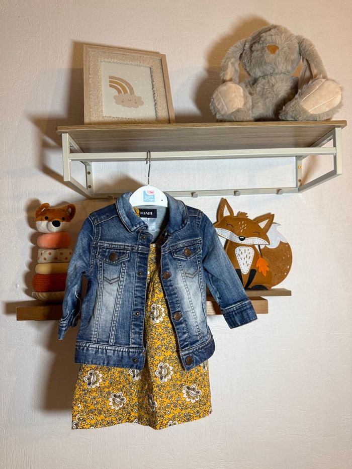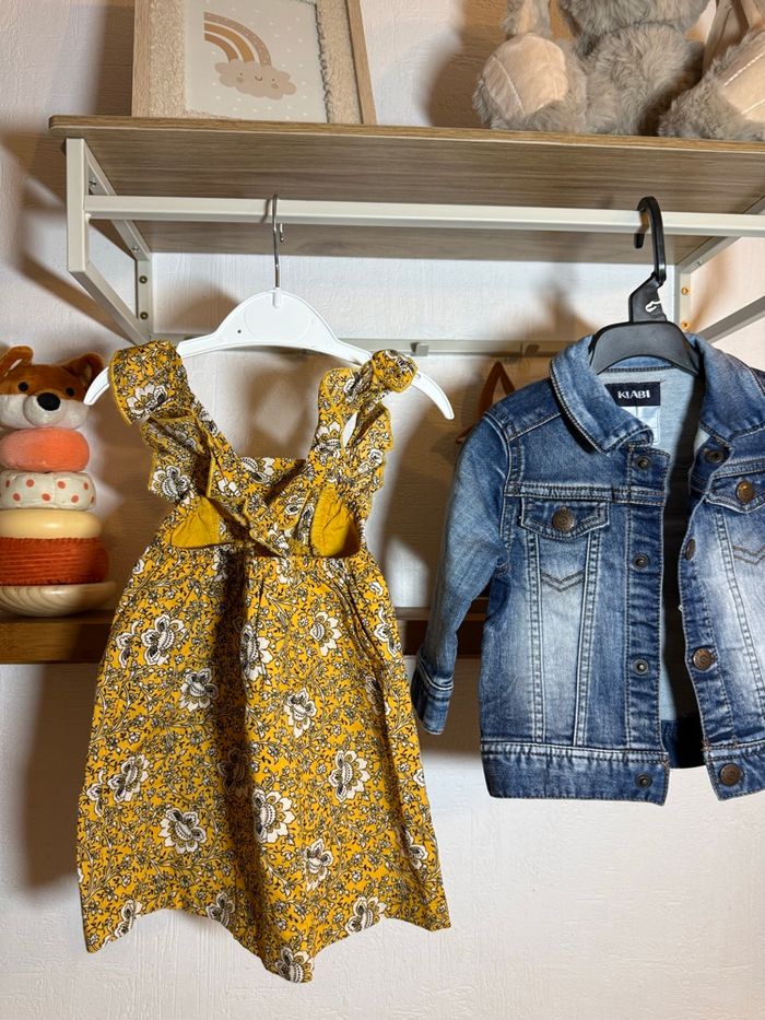 Adorable ensemble composé de : 🌼 Robe Kiabi jaune à motifs floraux, légère, doublée et confortable à bretelles croisés dans le dos 🩵 Veste en jeans Kiabi , parfaite pour la mi saison Taille 6 mois - 63/69cm Très bon état