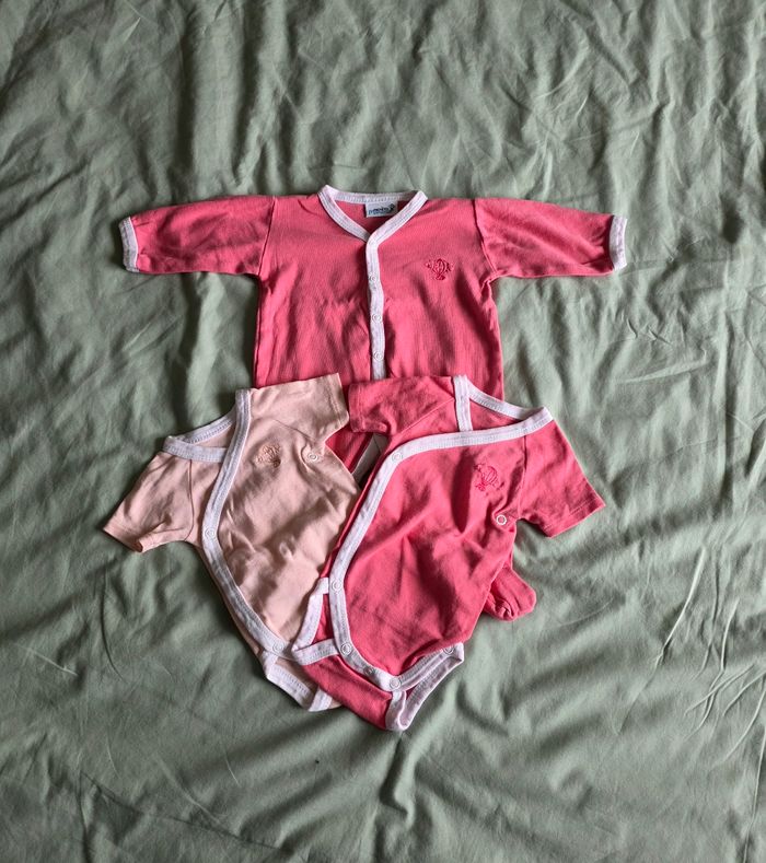 Premiers Moments Lot Pyjama et Bodies Coton Bio Rose Très bon état 1 mois - photo numéro 5