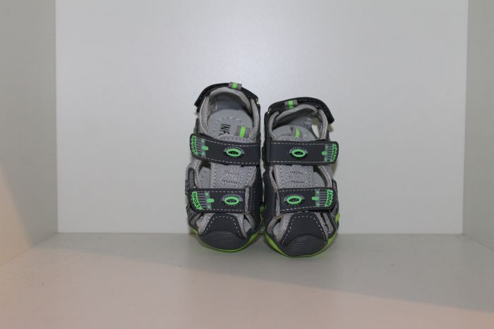 jolies sandales nus pieds grise et verte pointure 21 neuves dans boites,model avec 3 velcros pour un serrage au plus juste et fermer au bout pour éviter que les doigts de pieds de dépassent.dimensions semelle intérieur 13,5 cm en mesurant au milieu de la semelle devant et derrière. marque infinity shoes réf 0196 n'hésitez pas à faire un lot.