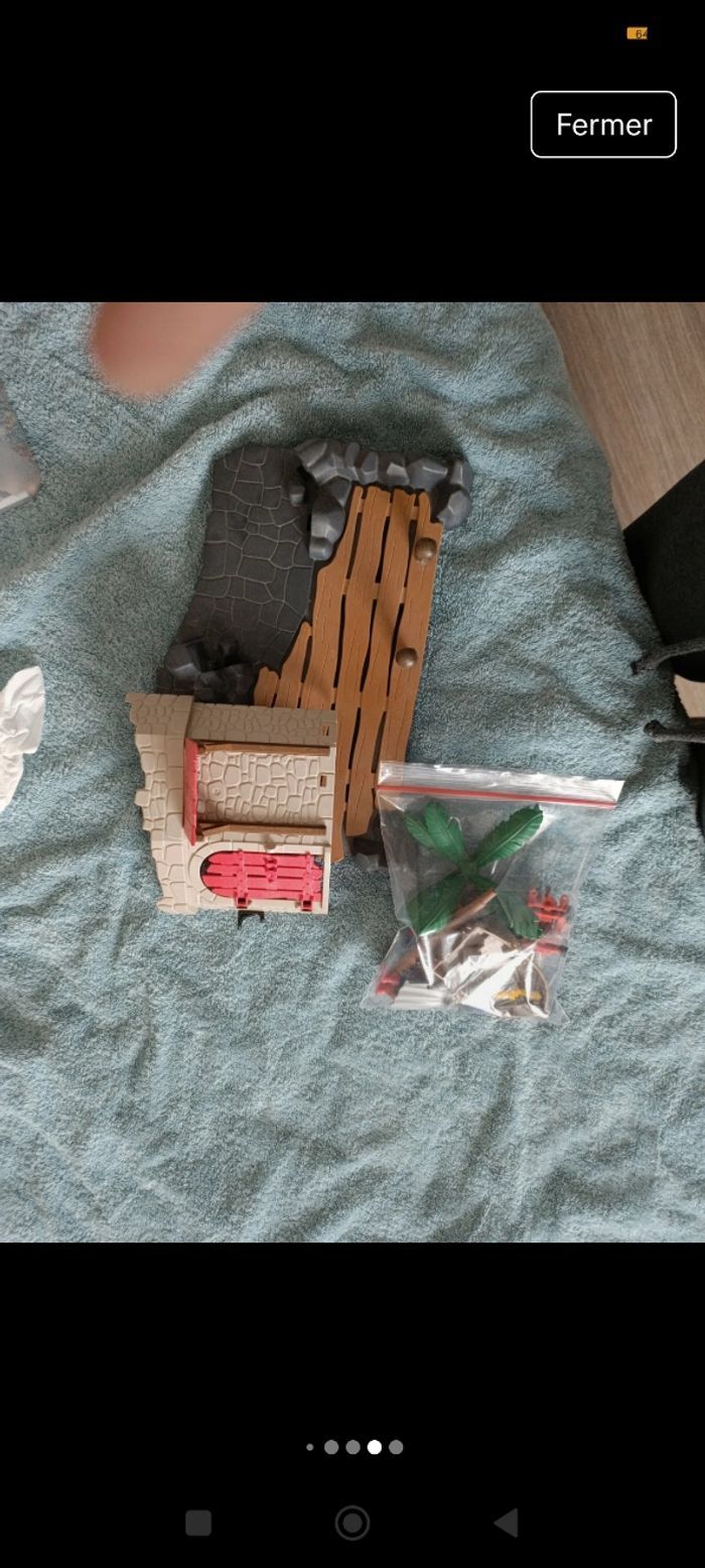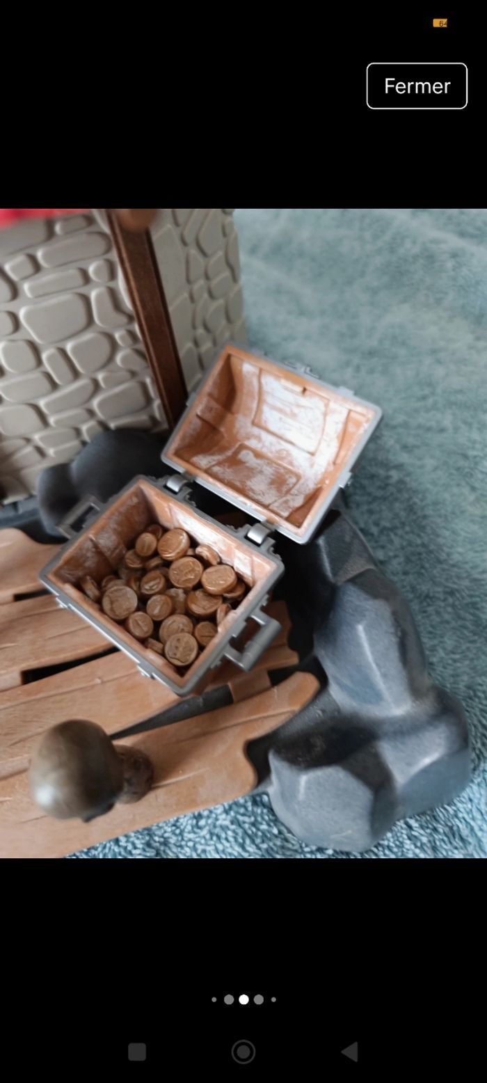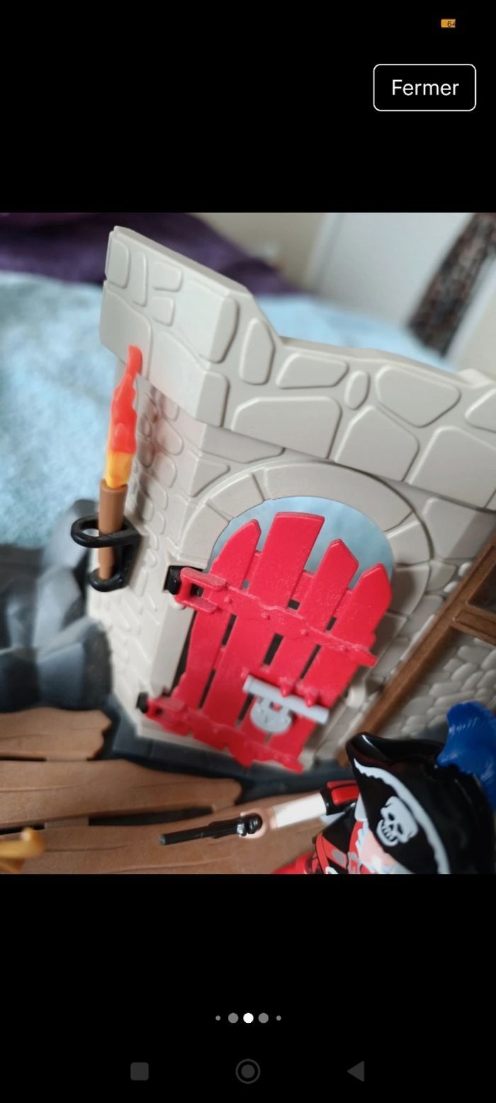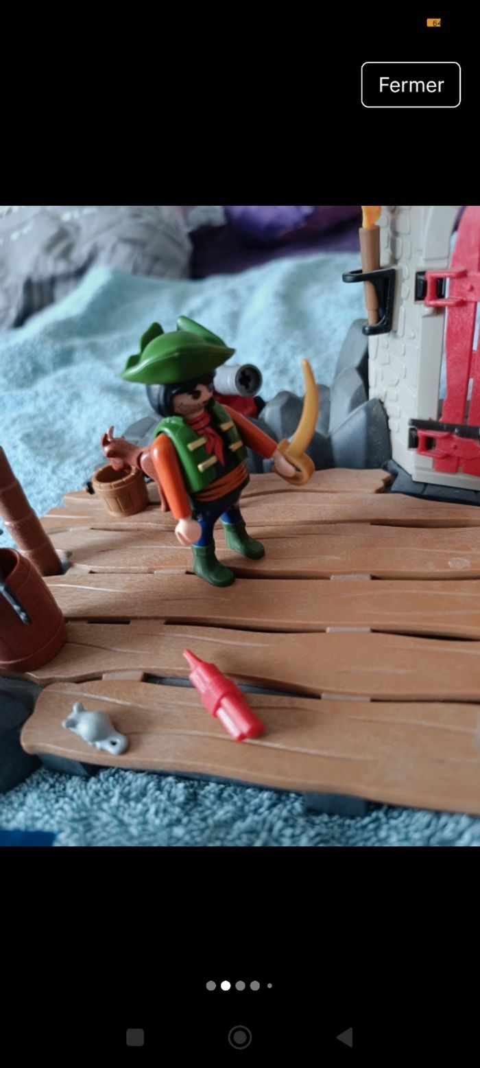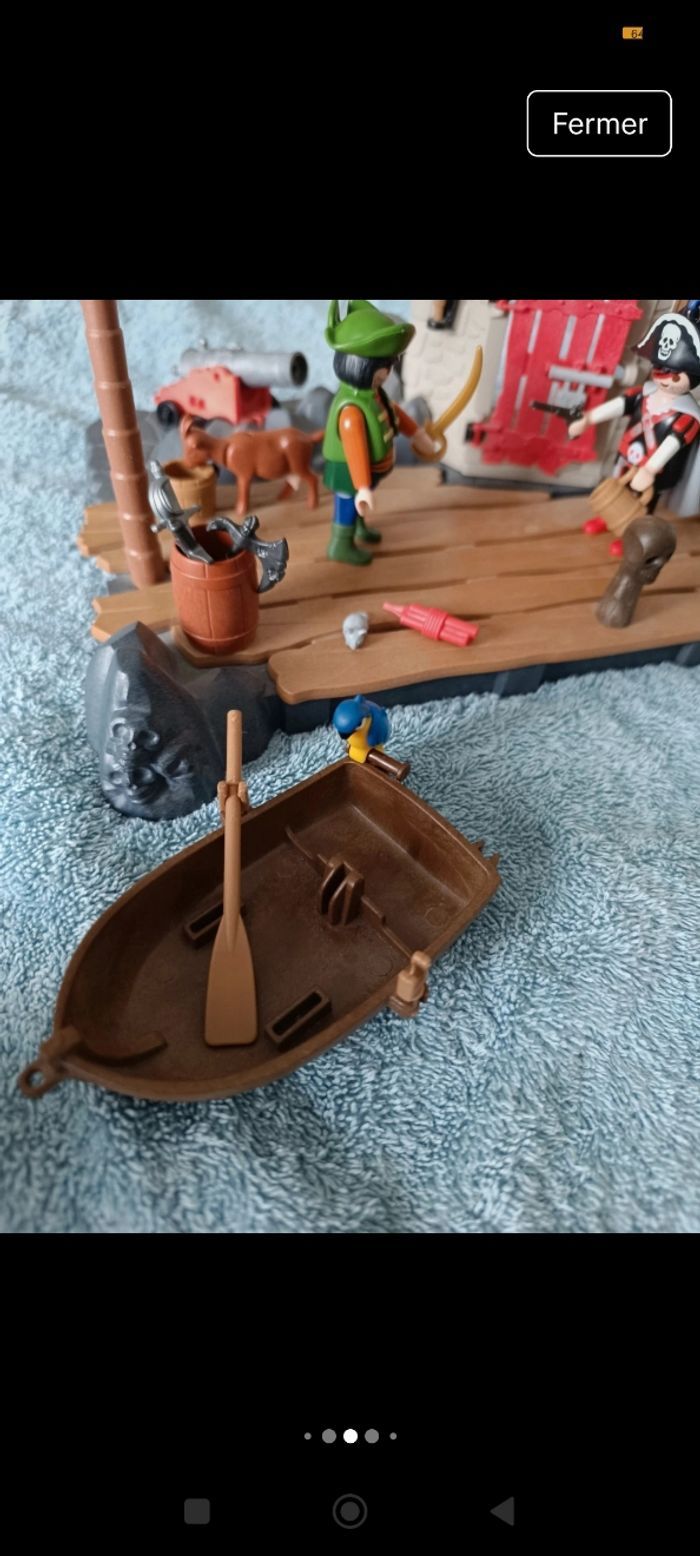 Playmobil pirate, le pièces ont été collées dans le coffre. J ai retrouvē la 2eme pagaie du bateau. Pas de boîte d originepeu jouet avec .