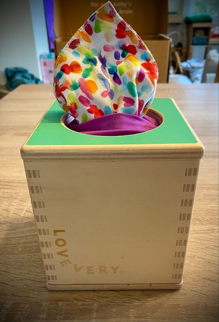 Je vends le kit de jeux Lovevery "The Senser" pour les 5-6 mois, COMPLET. Ce kit est particulièrement apprécié des bébés qui s’amusent à tourner le tonneau arc en ciel, et tirer les mouchoirs de la boîte (vous deviendrez vite experts en reconditionnement des mouchoirs car bébé les retirera plus vite que vous ne les rangerez à force 😊) Tous les jeux sont en très bon état, excepté le livre qui a subit quelques réparations (car commençait à se décoller), mais qui est parfaitement utilisable en l’état. (Voir photos) Le livre est en anglais, mais il s’agit uniquement des parties du corps donc aucun problème de traduction. Le guide explicatif sur le développement du bébé et comment jouer avec les différents jeux est également en anglais (facilement traduisible avec l’application « Google traduction » en cas de non-compréhension de la langue anglaise). N'hésitez pas à me contacter pour plus d'informations sur ce kit d'éveil Lovevery !
