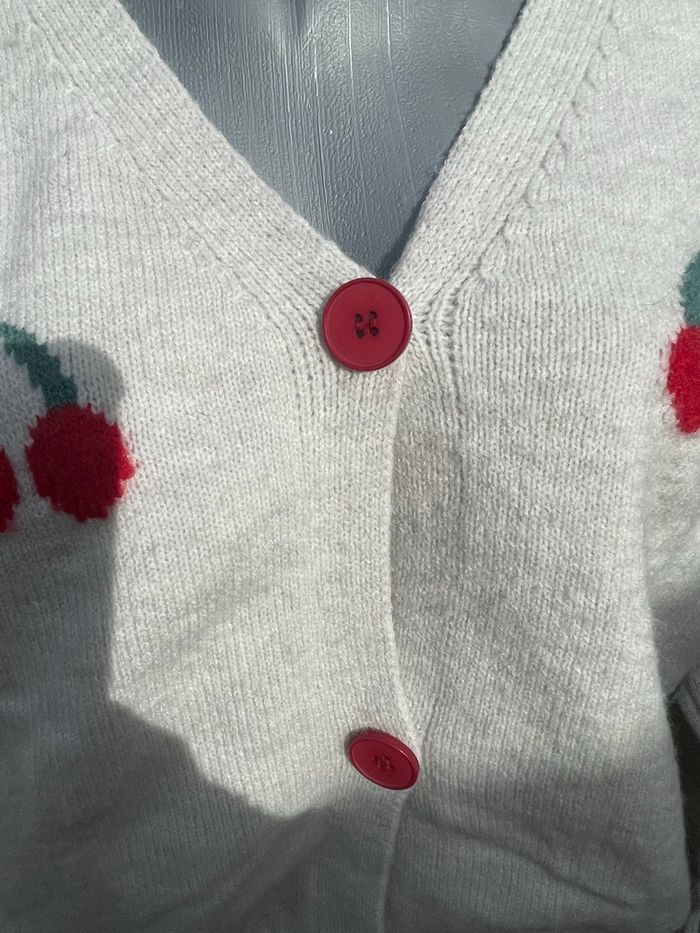 Cardigan en maille gris clair cerise broder - Boutique indépendante  - photo numéro 7