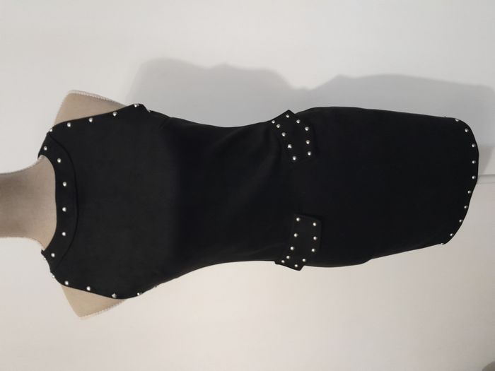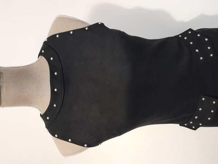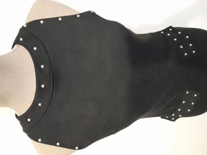 Robe, touché velours, 2 fausse poche, clou en déco, attache fermeture éclair au dos Longueur : 80cm, Fermeture éclair : 45cm Aiss / Aiss : 41cm Matière : 95 % Polyester, 5 % Elasthanne Marque : Made in Italy
