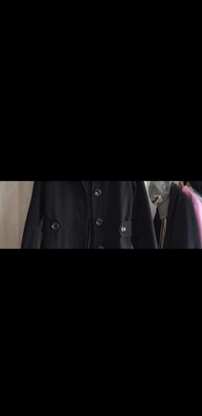 Bonjour je vends un beau manteau couleur noir intense chic il est entièrement doublé parfait avec un jean l'étiquette à l'intérieur est effacé c'est une taille 40