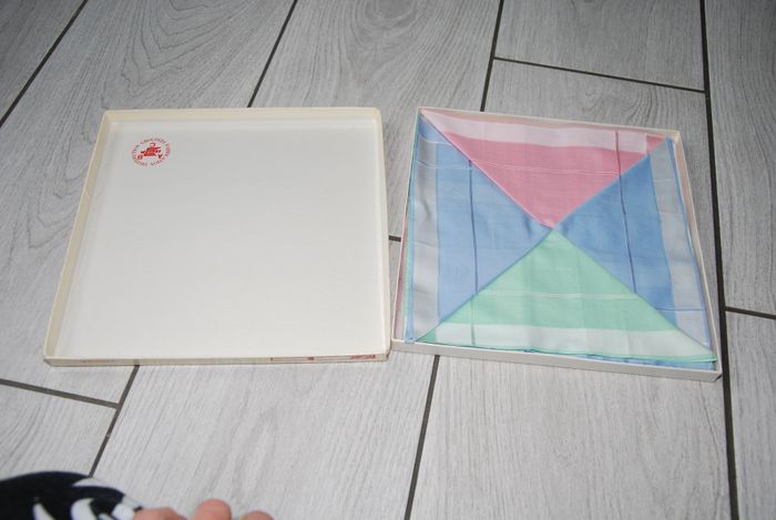 Mouchoir en tissu fabriqué dans un pur coton 100% pettinato. Il est conseillé de laver le mouchoir Legler avec le savon doux et avec de l'eau à une température ne dépassant pas 60 °c sans utiliser de javel. neuf vintage dans la boite d'origine 30X32 cm