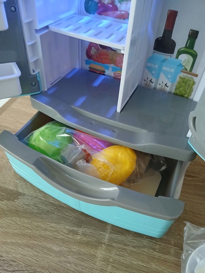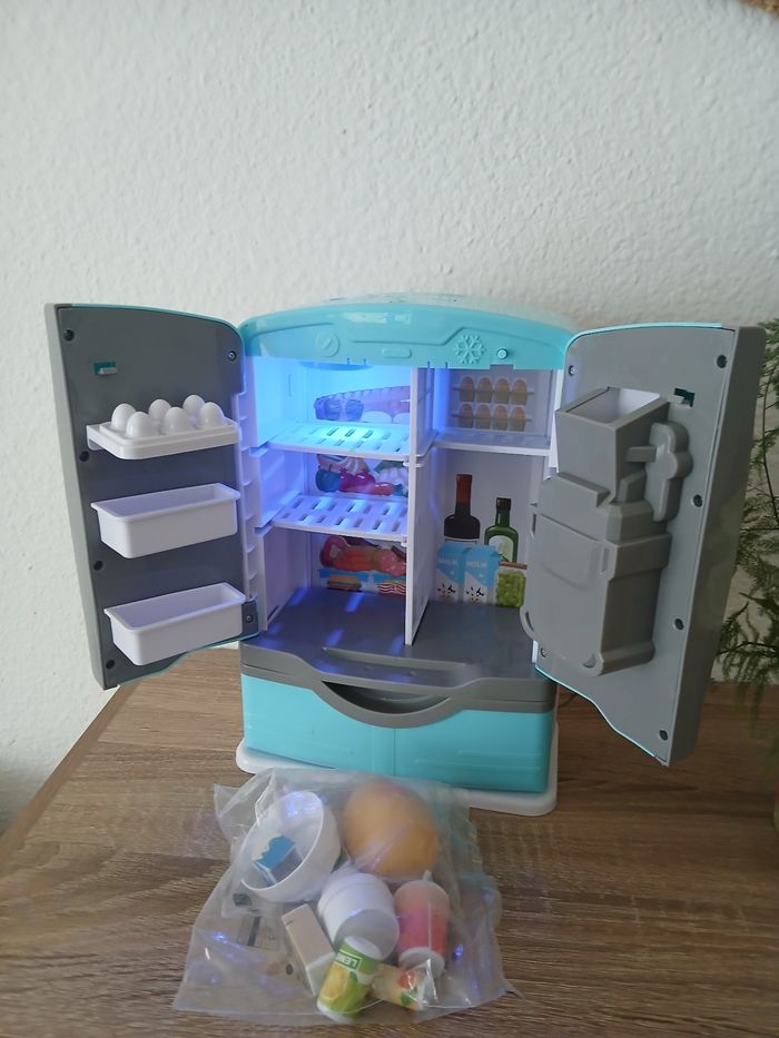 Avec son et lumière, kit complet avec de nombreux accessoires. Avec ce réfrigérateur bien rempli, votre enfant apprend à préparer les petits déjeuners et repas délicieux 😋