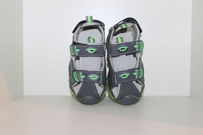 jolies sandales nus pieds grise et verte pointure 27 neuves dans boites,model avec 3 velcros pour un serrage au plus juste et fermer au bout pour éviter que les doigts de pieds de dépassent.dimensions semelle intérieur 16 cm en mesurant au milieu de la semelle devant et derrière. marque infinity shoes réf 0634 n'hésitez pas à faire un lot.