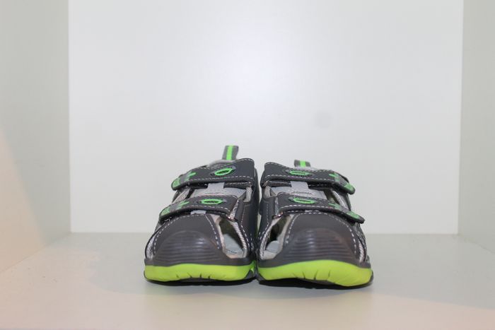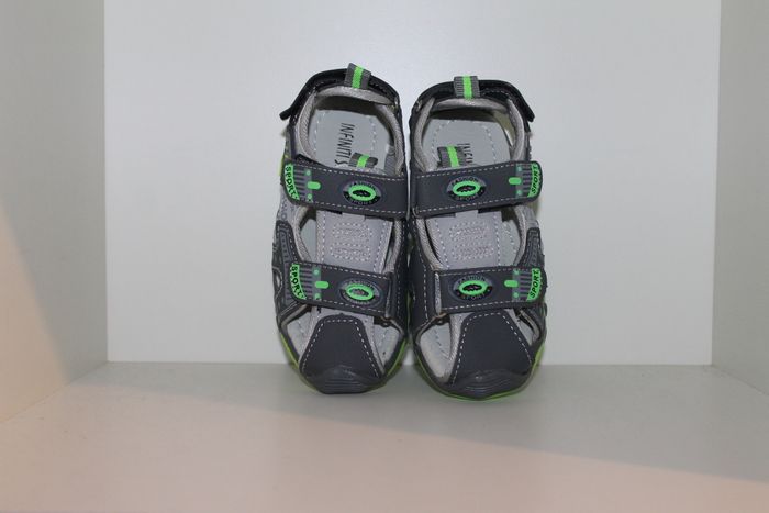 jolies sandales nus pieds grise et verte pointure 28 neuves dans boites,model avec 3 velcros pour un serrage au plus juste et fermer au bout pour éviter que les doigts de pieds de dépassent.dimensions semelle intérieur 16,5 cm en mesurant au milieu de la semelle devant et derrière. marque infinity shoes réf 0634 n'hésitez pas à faire un lot.