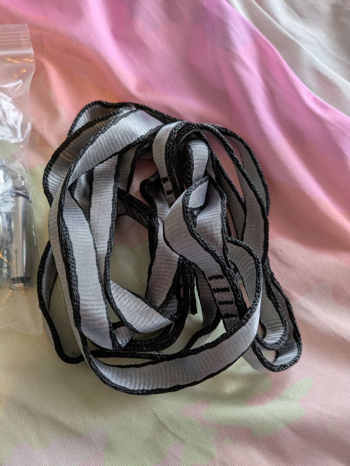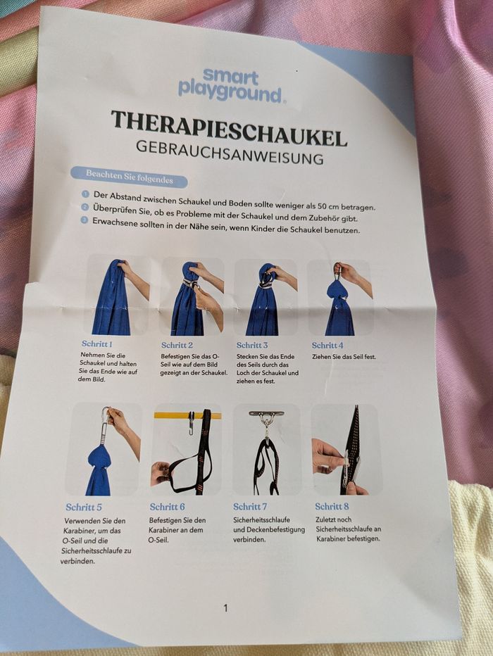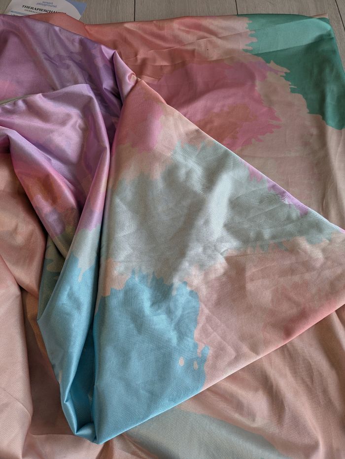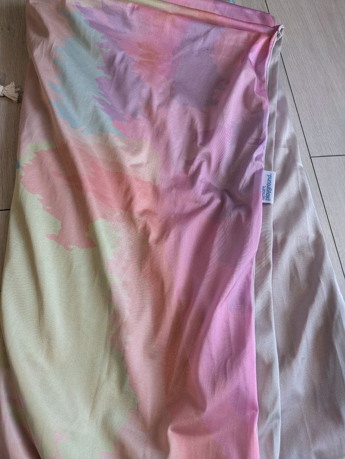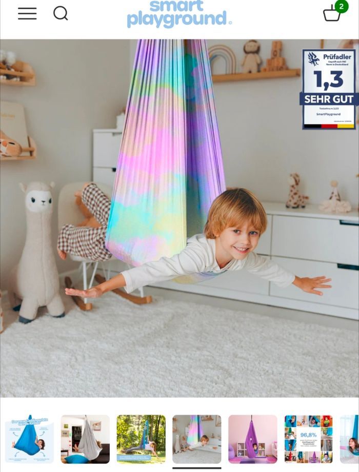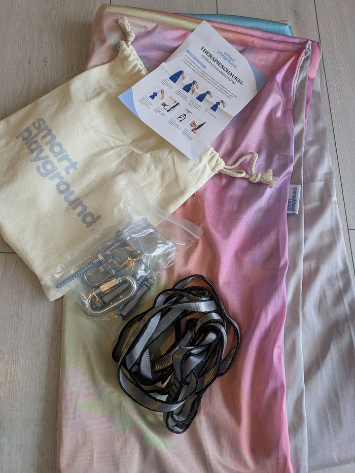 Balançoire sensorielle (thérapeutique) de la marque Smart Playground, neuve. Parfaite pour les enfants qui ont besoin d'un coin calme pour se détendre, lire ou s'apaiser (effet cocon très efficace). Supporte jusqu'à 150kgs. L'ensemble comprend : Le tissu de la balançoire (dégradé rose/violet/vert) Le sac de transport original Tout le kit de fixation (mousquetons, sangles, vis) La notice d'utilisation Facile à installer au plafond ou sur une poutre. Envoi rapide et soigné ! 📦