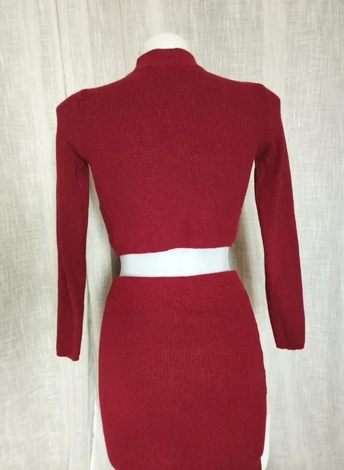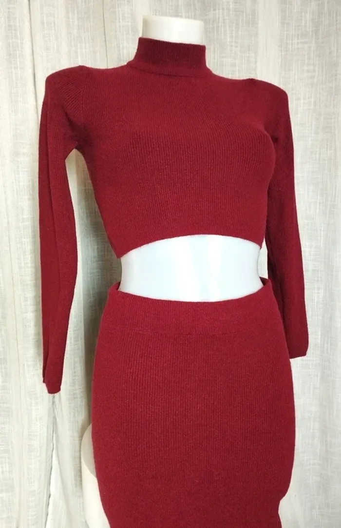 Ensemble haut et jupe bordeaux. Collection The Doll Beauty x Don't Call Me Jennyfer. Taille S.
