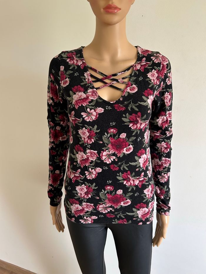 Haut fleuri à manches longues Amisu taille S TBE - photo numéro 1