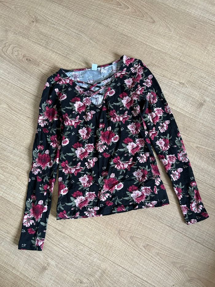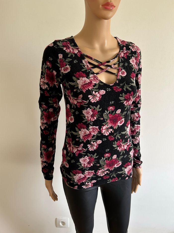 Haut fleuri à manches longues Amisu taille S TBE - photo numéro 9