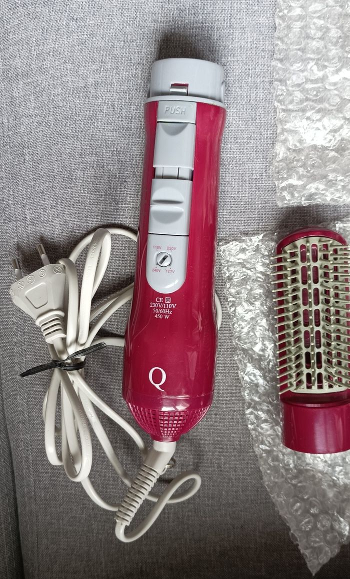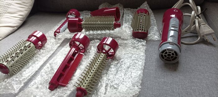 Je vends ce peigne soufflant multifonction avec 7 accessoires Cet appareil de beauté et de soin de la personne vous permettra de coiffer vos cheveux facilement et avec style. - Type de produit : Peigne soufflant - Accessoires inclus : 7 accessoires (brosse, embouts, etc.) en plastique moulé - Etat : Très bon état Cet appareil est en très bon état général, il a été peu utilisé. C'est un cadeau qui m'avait été fait mais que j'ai très peu utilisé car je me suis fait couper les cheveux N'hésitez pas à me contacter pour plus d'informations ou pour l'acquérir !
