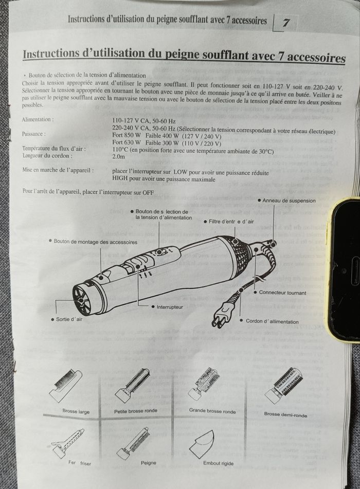 Peigne soufflant avec 7 accessoires