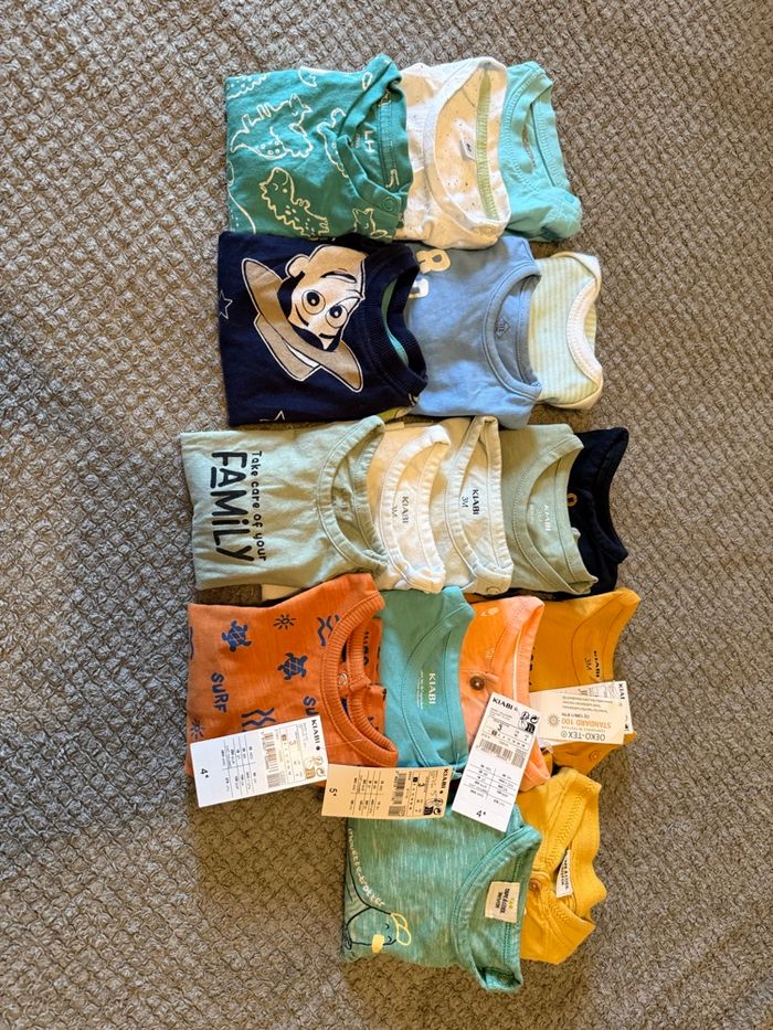 • 17 pièces • 1 orchestra • 1 zeeman • 1 la halle • 1 tex baby • 1 sans marque • 1 toy story • 5 kiabi neuf sans étiquette • 4 kiabi neuf avec étiquette • 2 tape à l’œil 📏 Taille 3 mois 🎨 multicolore ✅ très bon état 🏷️ 23€ 🚩 J’accepte également les propositions raisonnables. 📦 Pour les lots n’hésitez pas à m’envoyer un message pour que je puisse vous faire une seul annonce avec votre lots, pour limiter les frais de port