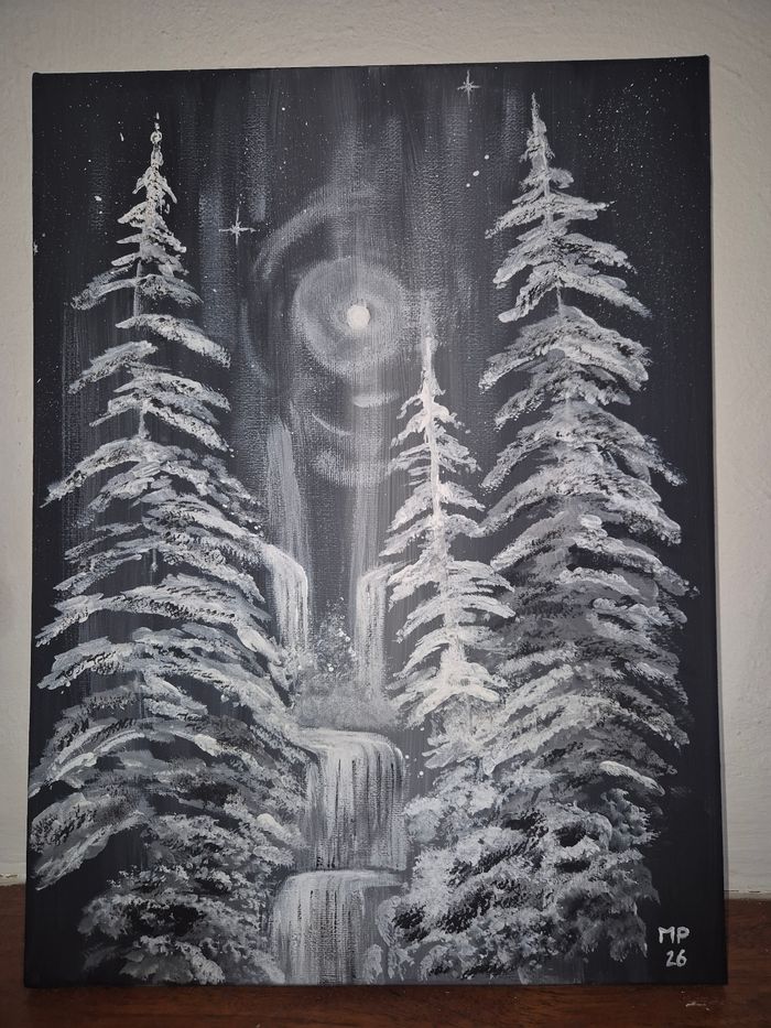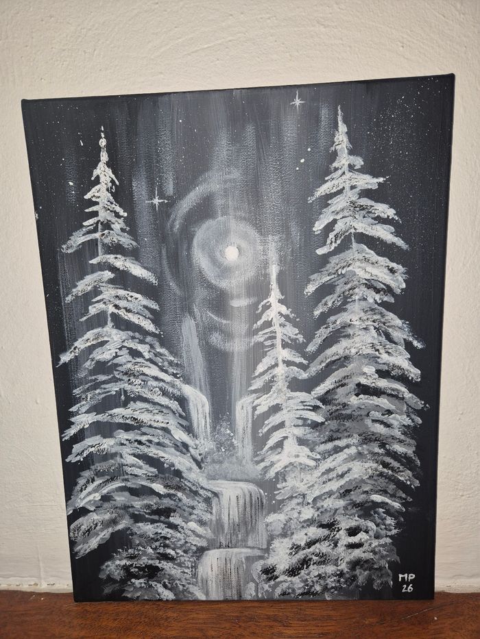 Toile Arbre Pin, Cascade, Lune  - photo numéro 3